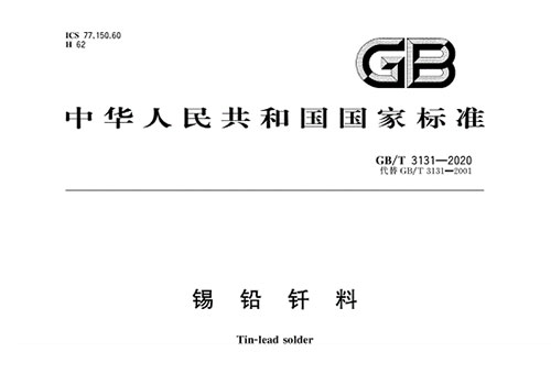 作为主要起草单位参与国家标准《锡铅钎料GB/T3131-2020》修订