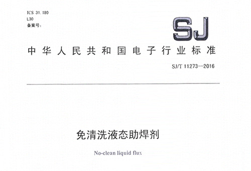 作为起草单位参与行业标准《免清洗液态助焊剂SJT11273-2016》修订