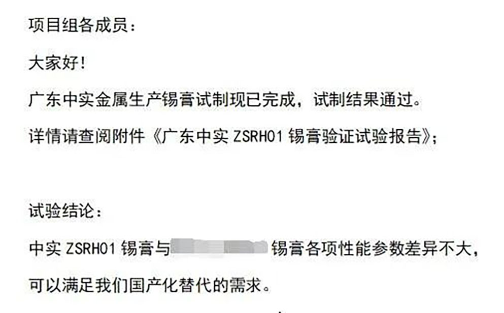 近日,收到消息,经过半年多的对比试验论证,五大联赛(中国)锡膏表现优异,从多家待选国内厂商中脱颖而出,圆满通过验证环节,可用于替代客户使用的国际大牌锡膏,满足了客户国产化替代的需求。