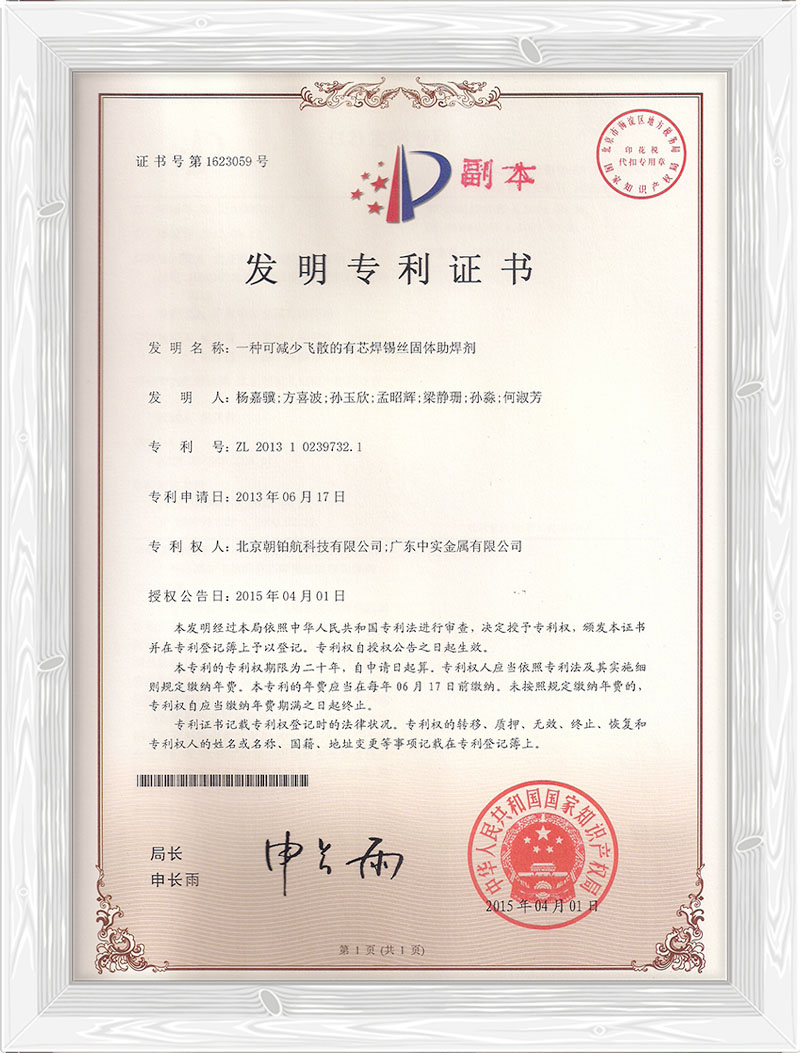 一种可减少飞散的有芯焊锡丝固体助焊剂