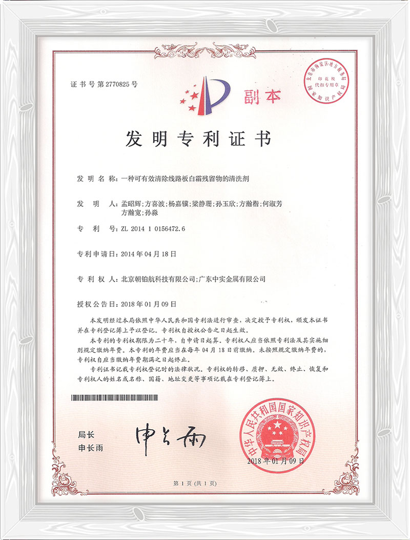 一种可有效清除线路板白霜残留物的清洗剂